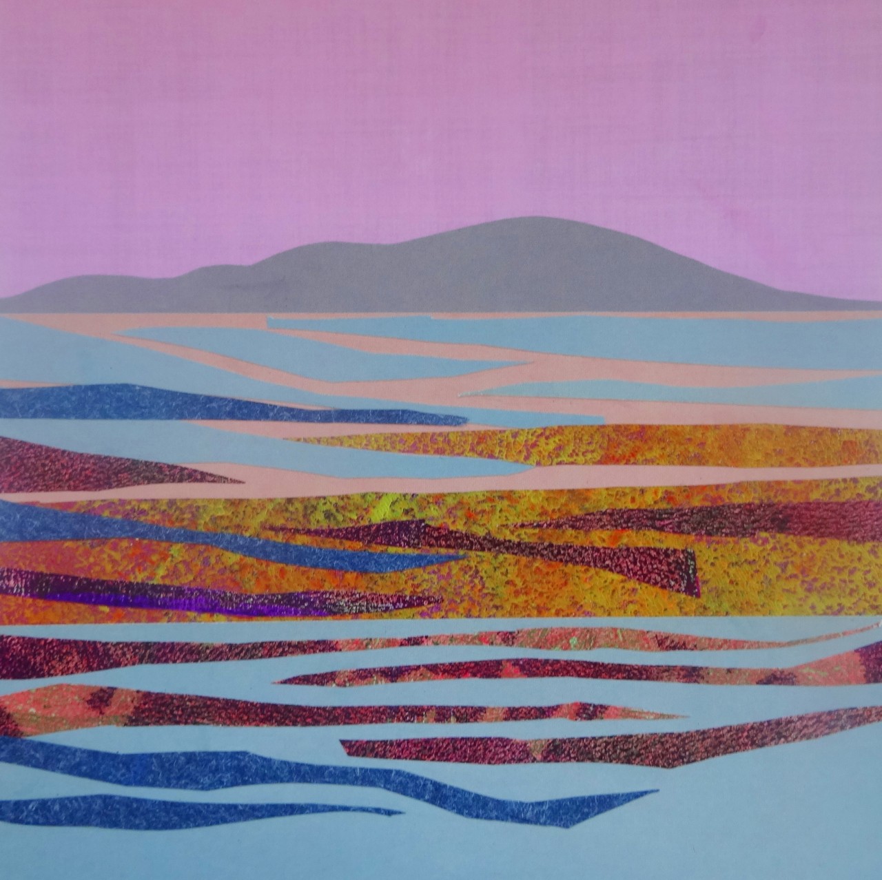 In a perfectly isolated layby there is nothing but the lapping and lolling of the gentle waves and unabated birdsong. I suddenly feel peaceful, centred, small. The sky is so conspicuous here. Ochres, mustards and maroons shift on the sands, redistributed with each new tide. Silver, blue and pink shimmer on the surface of the unpredictable and chaotic currents.